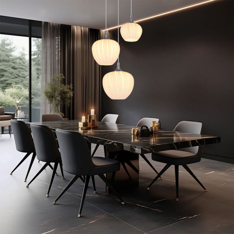 Lampe suspendue luminaire salle à manger suspension 3 lampes verre chromé motif blanc