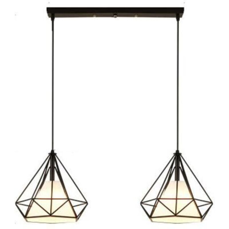 Suspension Cage Forme Diamant 2 têtes Contemporain 25cm 110-221V-Corde Ajustable-Luminaire Salle à Manger,Bar