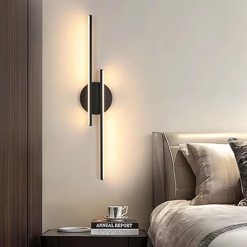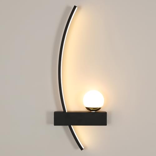 Comely Applique Murale Intérieure LED, 24W Noir Lampe Murale Moderne Lignes Simples Design, 3000K Lumière Chaude Luminaire Mural Interieur en Acrylique pour Chambre, Salon, Couloir, Escalier