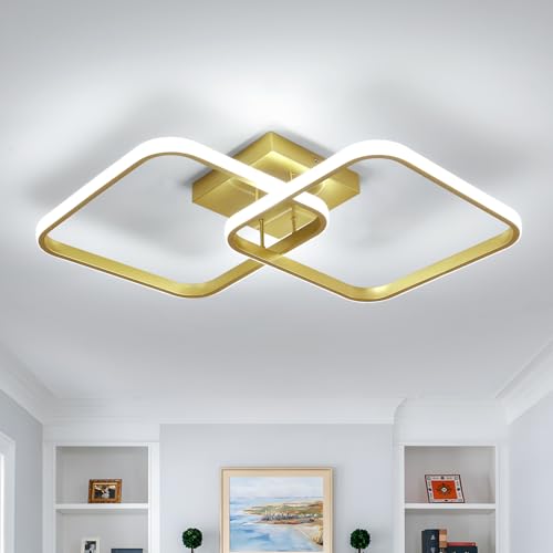 Mckalen Plafonnier LED Moderne, 42W 4725LM Lampe de Plafond Carré Design, 64CM Luminaire Plafonnier LED Aluminium Éclairage, Pour Salon Chambre Cuisine Salle à Manger, Lumière Blanche 6500K, Or