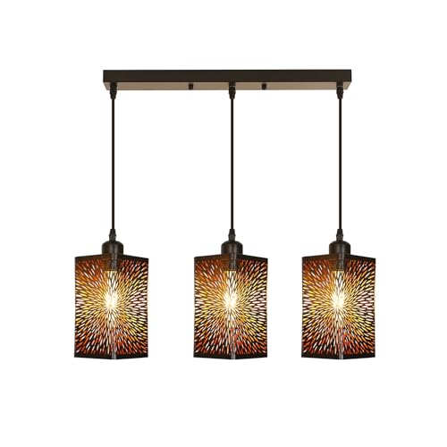 Goeco 3 Lustre Suspension Industrielle Design 3 Lampes, Luminaire Plafonnier Forme Feux d'artifice en Fer, E27 Lampe de Plafond Noir pour Salon Chambre Cuisine