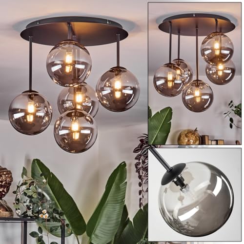 hofstein Plafonnier Chehalis de, plafonnier à 5 ampoules en métal/verre noir/fumé, luminaire moderne au design rétro/vintage (abat-jour Ø 15 cm), G9, salle à manger, salon, chambre à coucher, cuisine