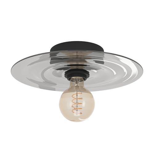 Eglo Plafonnier Lintmill, lampe de plafond décorative en verre fumé, luminaire salon métal noir et laiton, gris, Ø 30 cm