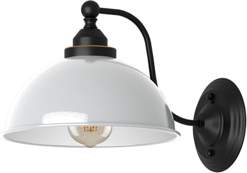 LEDSone Applique Murale Industrielle Vintage Rétro Abat-jour en Fer E27 Plafonnier Lampe Murale Luminaires Intérieur pour Cuisine Salle à manger Chambre Restaurant Bar (Rouge) (Blanc)