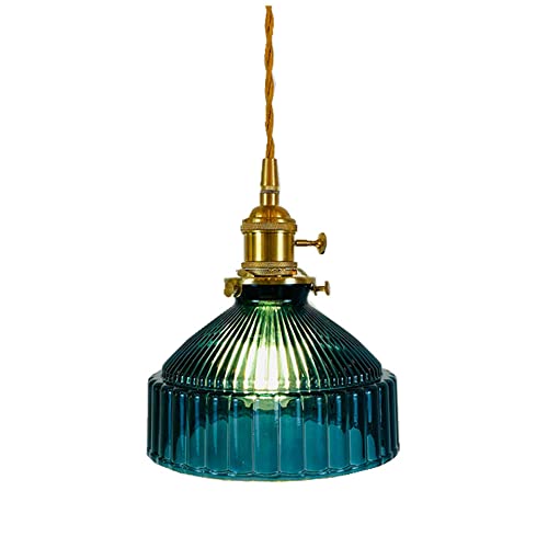 LEGZIT Suspension en Verre en Laiton de Style Japonais en Finition Verte Restaurant Nordique Éclairage Suspendu Vintage Luminaires rétro pour Cuisine Salon Salle à Manger Bar
