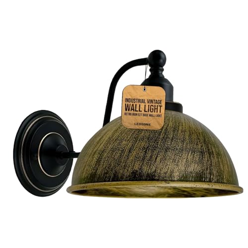 LEDSone Applique Murale Industrielle Vintage Rétro Abat-Jour en Fer E27 Plafonnier Lampe Murale Luminaires Intérieur pour Cuisine Salle à Manger Chambre Restaurant Bar (Laiton brossé)