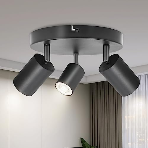 BOYIR Plafonnier LED 3 Spots, Rond Spots de plafond Orientables, Plafonnier Spot GU10, Moderne Éclairage de Plafond, luminaires intérieur pour Cuisine Salon, Noir, Livré Sans Ampoules