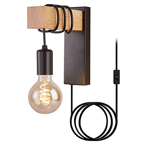 Glighone Applique Murale en Bois Intérieur Dimmable, Lampe Murale Industrielle Vintage Noir, Luminaires Intérieur pour Chambre Salon, E27 Douille