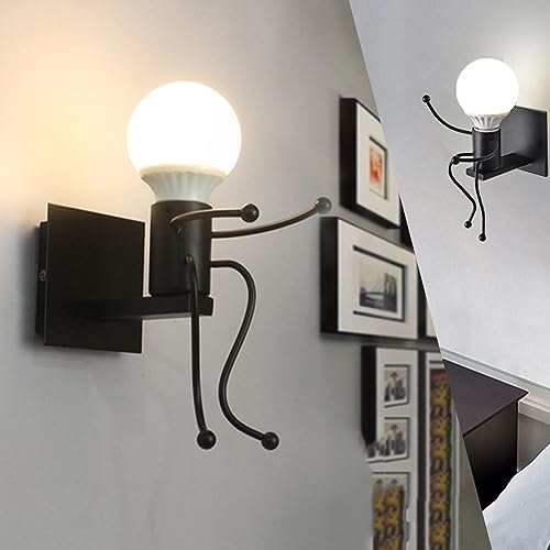 Applique Murale Interieur Design E27, Lampe Murale Fer Moderne Blanc, Créatif Lampe de Mur Vintage métal Luminaires pour Chambre D'enfants, Couloir, Chambre, Cuisine, Café Escalier salon (Noir)