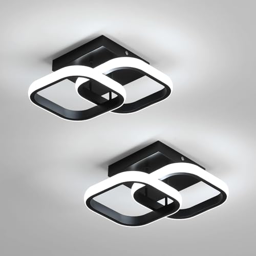 Comely Lot de 2 Plafonniers LED Modernes, 24W 2700LM Petit Noir Plafonnier LED Carré Luminaires Intérieur pour Chambre Salon Allée Couloir Balcon, Lumière Blanche 6500K, 24cm