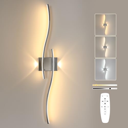 Goeco Applique Murale LED Intérieure, 89 cm 29W Lampe Murale Longue Dimmable avec Télécommande, 3000K-6500K, Luminaires Murale LED pour Chambre à coucher Salon Escalier Cuisine Corridors, Chrome