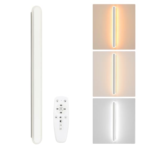 Applique Murale Intérieur LED, 22W Lampe Murale à Gradation avec Fonction Mémoire et Télécommande, Moderne Design Lignes Luminaires Murals Intérieur pour Chambre Salon Couloir Escalier, Blanc, 80CM