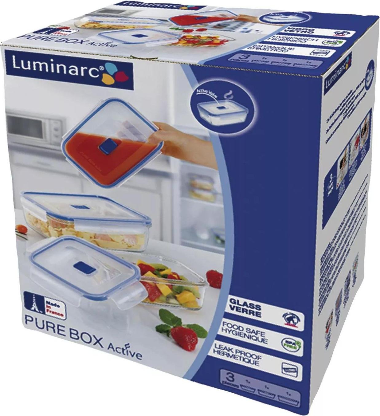 Luminarc - PURE BOX ACTIVE - Set de 3 boites de conservation hermétique, Verre