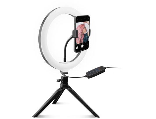 Perche à selfie avec anneau lumineux de 20cm sur trépied
