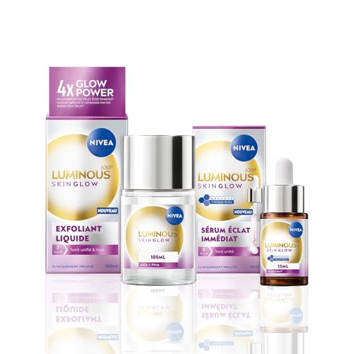 NIVEA Luminous 630 - Duo Skin Glow Exfoliant Éclat 100 ml + Sérum Éclat 15 ml - Exfolie En Douceur, Hydrate & Affine Les Pores - Soins Visage Anti-Taches - Vegan - Tous Types De Peaux - 15 ml