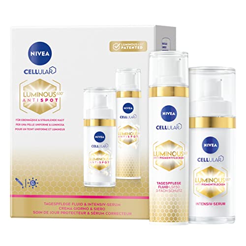 NIVEA Cellular LUMINOUS 630 Kit de soin de jour fluide et sérum intensif, anti-taches pigmentaires, avec soin de jour anti-âge et sérum, coffret cadeau (1 x 40 ml, 1 x 30 ml)