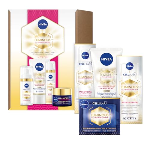 NIVEA Cellular Luminous Kit anti-taches pigmentaires avec sérum pour le visage, crème de jour anti-âge, crème de nuit régénérante et crème pour les mains contre les taches pigmentaires, kit de soins
