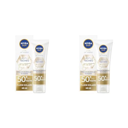 NIVEA SUN Fluide UV visage Luminous 630 FPS 50+ (1 x 40 ml), Crème solaire visage anti taches à la formule légère et non grasse, Soin visage anti-âge protecteur quotidien (Lot de 2)