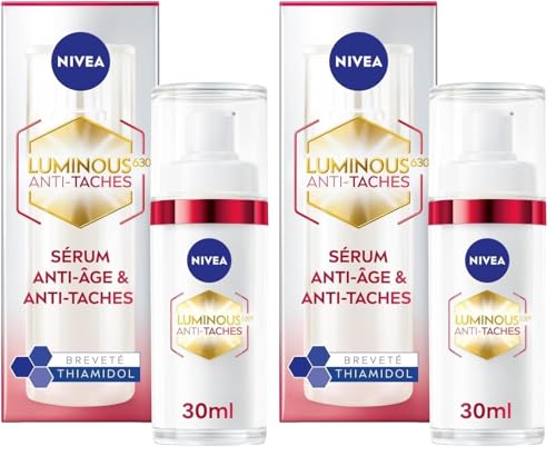 NIVEA Luminous 630 - Serum Visage Anti-Âge & Anti-Taches - Combleur De Rides Profond & Booster De Collagène - Thiamidol Breveté & Acide Hyaluronique - Tous Types De Peaux - 30 ml (Lot de 2)