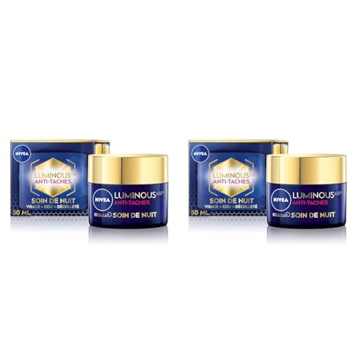 NIVEA Luminous 630 Soin de nuit (1 x 50 ml), Crème de nuit anti taches pigmentaires, Soin visage nuit anti-âge perfecteur de teint pour femme (Lot de 2)
