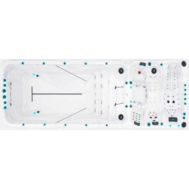 Spa rigide 4 places – 720x228x152 cm – 110 jets dont 104 jets d'hydrothérapie – Système audio Bluetooth intégré