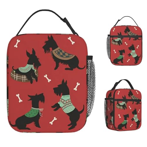 QIOEURYU Sac Isotherme Repas Scottish Terrier Portable Boîte à Lunch Box Unisexe Sac Glacière Personnalisé Mignon Oxford Tote Food Bags pour Travail Bureau l'écol Pique-nique Voyages