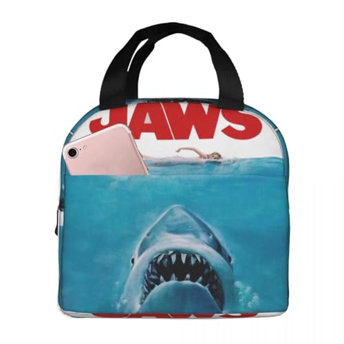 Sacs fourre-tout unisexe Jaws Affiche de film Sacs à lunch isolés isotherme Réutilisable Grande capacité Tote Lunch Box Sac de nourriture Collège Cadeaux vintage classiques en plein air