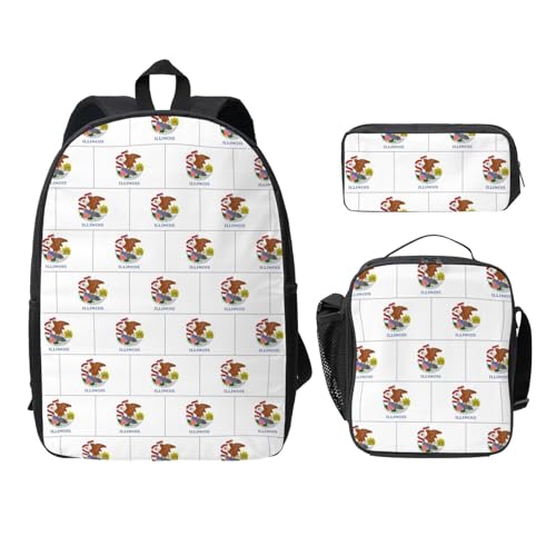 UVBDF Illinois State Flag Sac à Dos Livre Sacs avec Lunch Box Crayon Sac Pour Week-end Aventures, Noir, taille unique
