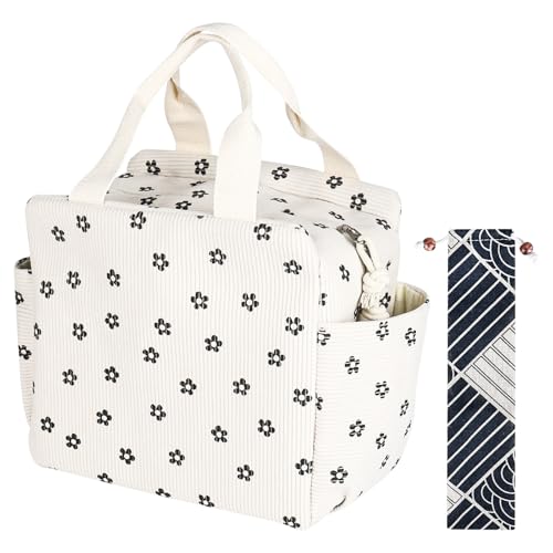 FANDARE Sacs-Repas Portable Sac à Main Lunch Box Grand Capacité Sac Déjeuner pour Femmes Hommes Étudiants à l’École Bureau(Fleur)