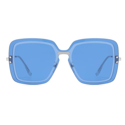 Lunettes De Soleil Femme Lunette De Soleil Homme Polarisée Transparente Ronde Accessoires Peche Randonnée Vintage Carré Polarisées Sans Monture Pour Sun Glasses Solaire Sport Retro Bleu Classique