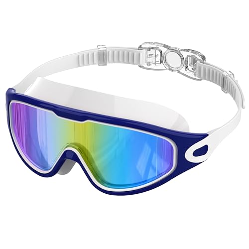SWAUSWAUK Lunette Piscine Enfants - Lunette Natation Filles Garçons 4-12 Ans Imperméables Antibuée Verres Grande (Bleu & Blanc1)