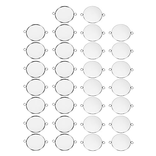 PATIKIL Pendentif Plateaux, 30 Paquets 316 Inox Acier 30mm Rond Lunette Plateaux Pendentif Socle Cabochons Plateaux avec 2 Bagues pour Photo Pendentif joyau Fabrication, Argent Ton