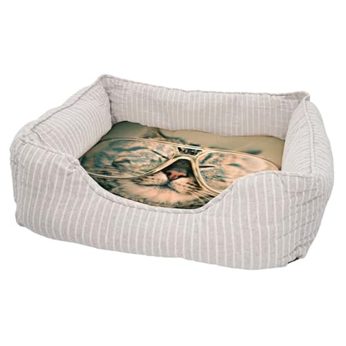 Fabulous Panier pour Chien et Chat Rembourré - Chat Tigre A Lunette Photo Drole Mignon - Lit Confortable avec Coussin Déhoussable et Lavable Couchage Moelleux Imprimé en France Base Antidérapante