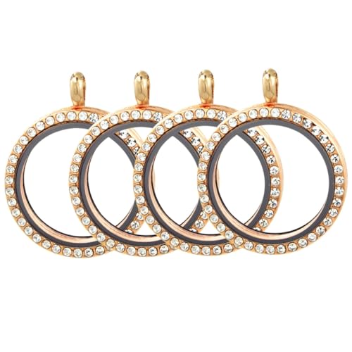 Gogogmee Médaillon Photo Rond Strass, Pendentif à Lunette pour Photo Personnalisé, Alliage Rose Doré, 4 Pièces, Bijou Diy, Décoration Créative pour Collier, Présent Mariage, Usage