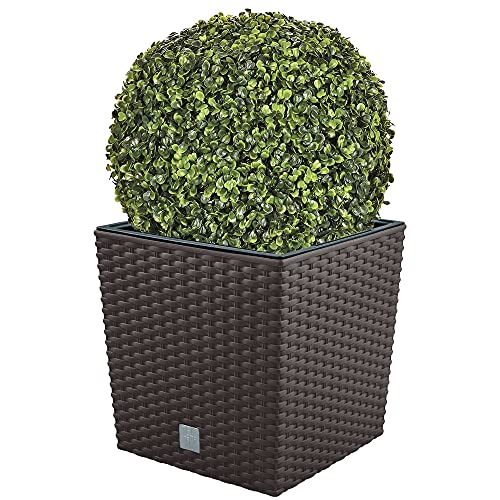 Vue de fleurs 32 litres avec béter pour planter de la couleur au chocolat 33 x 33 x 33 cm + Boj Ball diamètre 36 cm