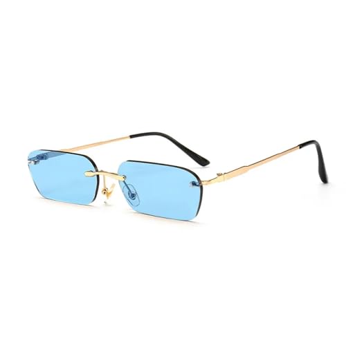 YUEZHAN Lunette De Soleil Homme Mode sans Monture Lunettes De Soleil Hommes Femmes Populare sans Cadre Lunettes De Soleil Mâle Femelle Classique Petit Carré Bleu
