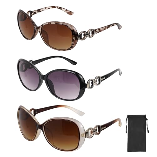 XWCHASA Lot de 3 Lunette de Soleil Femme Polarisée,Sunglasses for Women,Protection UV400,Ronde Lunettes Soleil Femme Luxe pour Conduire Voyager