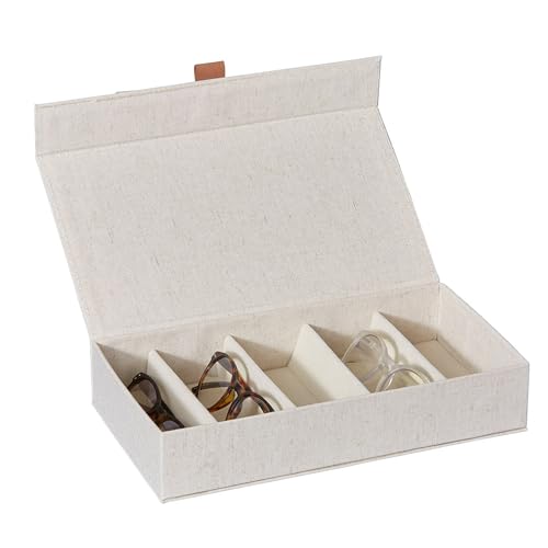 LOVE IT STORE IT – Premium - Boîte à Lunettes Rangement avec Couvercle Aimanté - Range Lunettes 5 Compartiments - Rangement Lunette de Soleil - Beige - 30x17x6cm