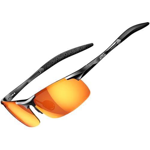 ATTCL Homme Lunettes de Soleil Polarisées Sports Lunette De Soleil Polarisé Al-Mg métal Cadre super léger 8-177 Black-Red