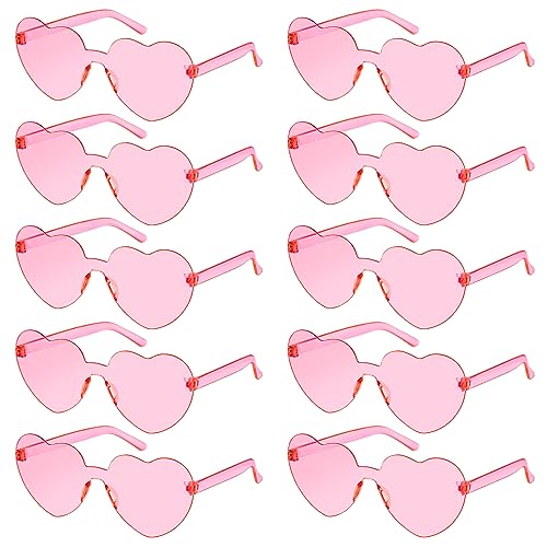 SelfTek Lunettes Cœur, 10 Paires Lunettes en Forme de Cœur, Lunettes De Soleil Coeur, Lunette Soiree de Fête pour Anniversaire, Mariage, Carnaval, Accessoires Photo pour Femmes, Hommes(Rose)