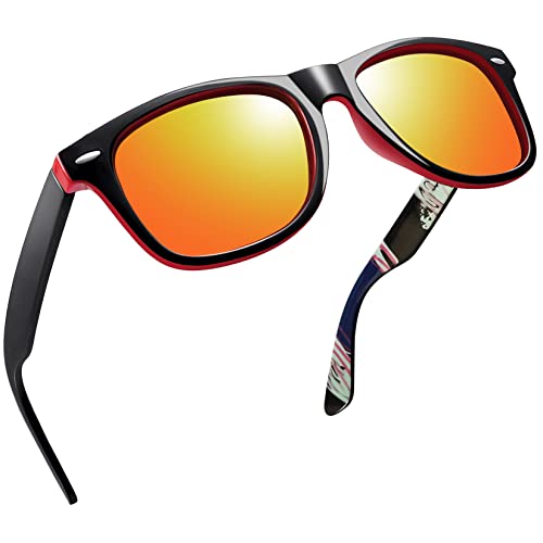Joopin Rouge Orange Lunette de Soleil Effet Miroir Femme Polarisée Carrée et Lunette de Soleil Homme Vintage Pour Voyage
