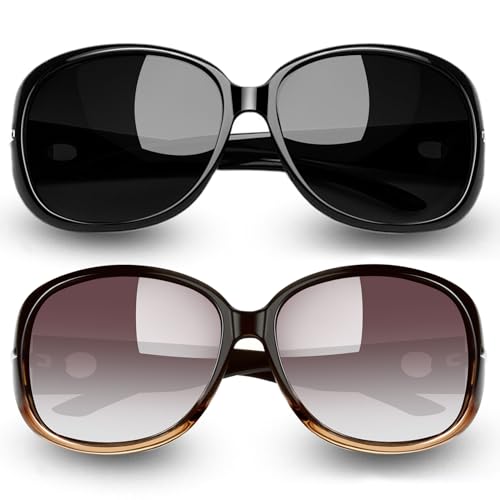 Joopin Lunette de Soleil Femme Oversize Lunettes Solaires Polarisées à la Mode XXL 2 pack Noir Léopard
