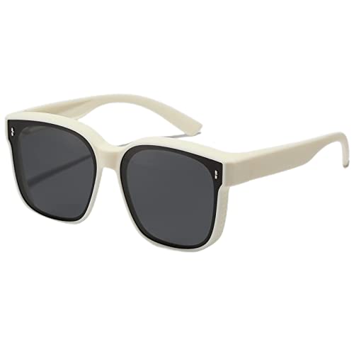 KANASTAL Lunettes de Soleil Polarisées Homme et Femme Lunette de Soleil Blanc Cassé Carré Mode Style UV400