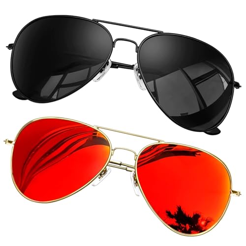 KANASTAL Lunettes de Soleil Femme et Homme Polarisées UV400 Lunette de Soleil Alliage Al-Mg Premium Rétro 2 Paires Noir et Orange Dorée