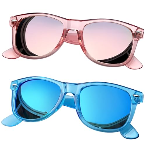 Joopin Lunettes de Soleil Polarisées Homme et Femme Lunette Solaire Polarisante Style Rétro pour Conduire Voyager(Transparent Bleu+Transparent Rose)