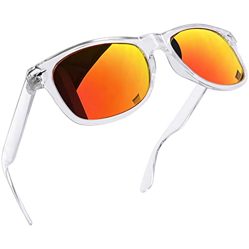 Joopin Rétro Lunettes de Soleil Femme Miroir Polarisées Carrées pour Homme et Lunette de Soleil Orange Rouge Transparent Pour Voyage