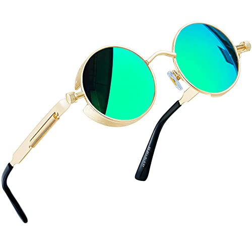 Joopin Steampunk Lunette de Soleil Femme Ronde et Lunette de Soleil Polarisée Homme Rétro UV400 Miroir Vert