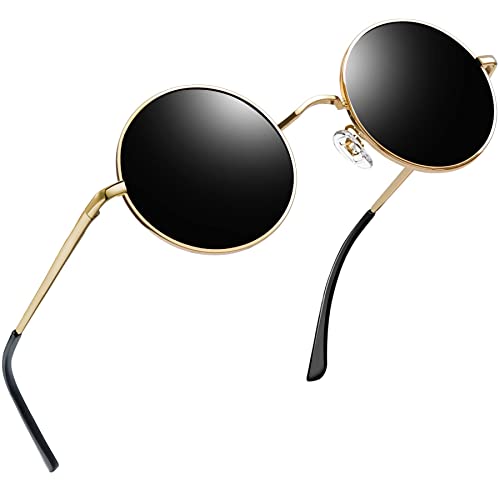Joopin Lunettes de Soleil Homme Ronde Hippie Lunette de Soleil Polarisée Rétro Vintage Style Basique pour Voyage UV400 Noir Or