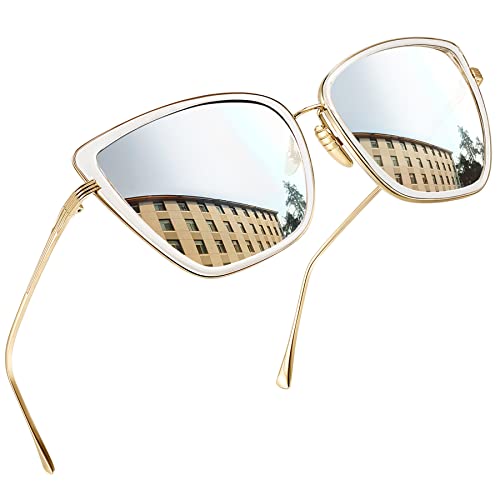 Joopin Lunette de Soleil Miroir Dorée pour Dames Lunette de Soleil en Grand Cadre Rétro Mode Lunettes Femme Papillon Designer Vintage Voyage Conduite Plage