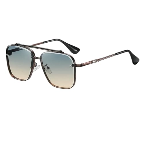 LSQBDFC Lunettes De Soleil Gradient Sunglasses for Men Fashion Metal Big Frame Sun Glasses Luxury Lunette Homme-Bronze Gris Orange-comme Image